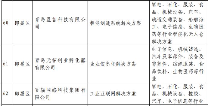 为完善企业技术改造服务体系,推动工业企业智能化技术改造深入发展,提供市场化专业服务,根据《青岛市工业和信息化局关于征集青岛市企业技术改造服务商的通知》等文件要求,即墨区工信局遴选并推荐了一批率先在所属行业领域成功实施智能化技术改造,能够为制造业企业实施智能化技术改造提供诊断咨询服务和系统性解决方案的优秀服务商。