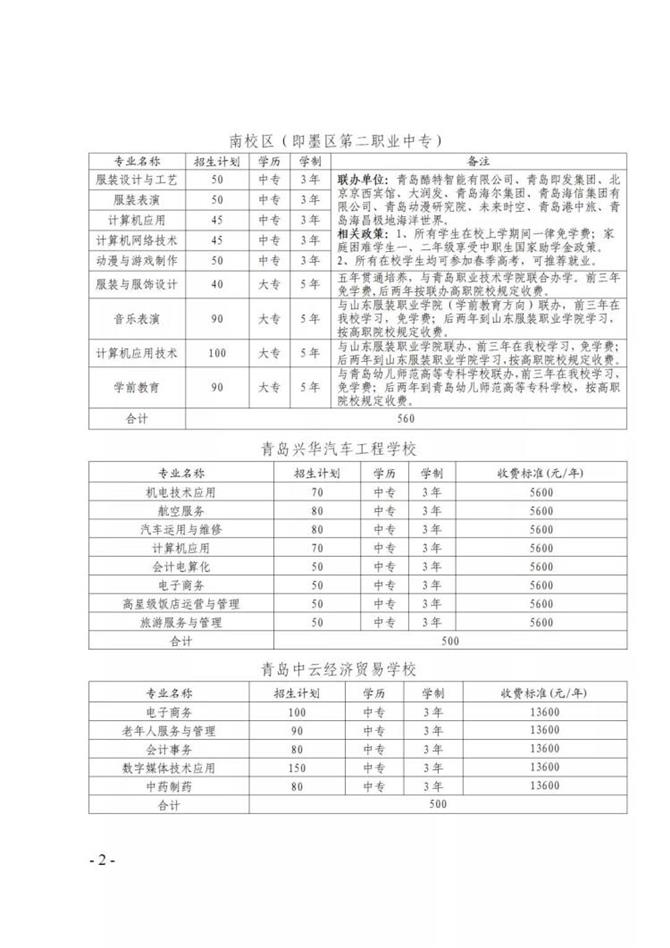 我区第一职业中等专业学校(北校区、南校区)计划招生1560人,其中中专生960人、五年制高职生600人。民办职业学校青岛兴华汽车工程学校计划招收中专生500人,民办职业学校青岛中云经济贸易学校计划招收中专生500人(具体招生计划见附件1)。