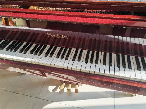 九五成新诺蒂斯卡三角钢琴因房租到期急需低价转让,买的时候三四万,音质音色质量非常好,性价比极高,酒红色,高端大气上档次!