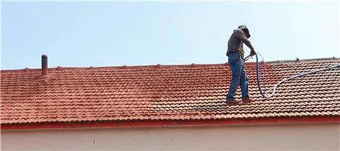 工作内容是 在房顶喷涂防水材料(喷涂金刚橡胶屋顶)。