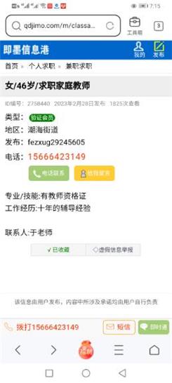 您可以这样电话联系:“您好,我从 即墨信息港 看到您发布的...信息,请问...”