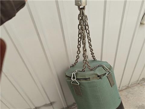 物品名称及描述:即墨区长江高中附近自提二手拳击散打跆拳道健身武术沙袋,挂式的镀锌铁链卡扣,很结实。沙袋高0.8米。买的时候70块钱,是空壳,我去朋友的工厂找了些绒布下脚料,塞沙袋里面,这样不伤手。不算铁链重量,仅沙袋和里面的填充绒布重约19斤。很久没用,有点灰尘,您自己擦洗一下。
