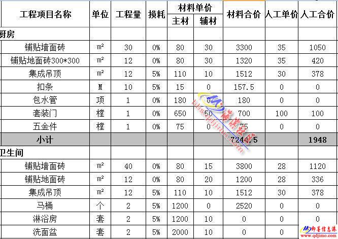 这两个部分里人工费是固定的,给大家举个例子,我们按照买半瓷的瓷砖计算,铺贴50元一个平方的瓷砖的工费和300元一个平方瓷砖的工费是一样的,即使工人的手艺不一样,每平的工费最多差个三五块钱,以一个100平房子为例,瓦工工费最多差个几百元。