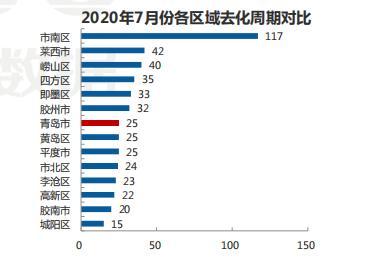 从2020年7月份各区域去化周期对比中可以看出,即墨区商品住宅去化周期为33个月,低于青岛平均去化周期。