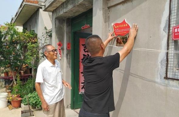 “我1964年入伍,1969年入党,没做过什么惊天动地的大事,就是听党的话、跟党走,挂上牌就等于亮明了身份,以后我会继续以微薄之力为党分忧、为民服务。”王金瑞指着门前崭新的“共产党员家庭”标志牌高兴地说。作为一名老党员,王金瑞多年来一直以党员身份严格要求自己,在化解矛盾纠纷、帮扶困难群众、环境综合治理等方面发挥积极作用,疫情期间坚持村内巡逻4个多月,始终秉持党员初心,退伍不褪色。