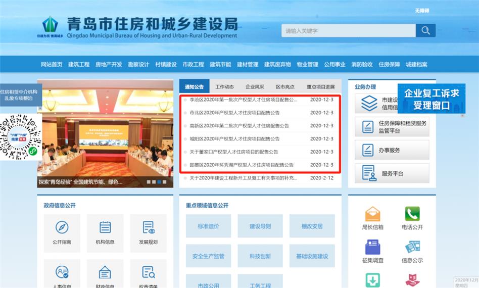 青岛市住房和城乡建设局官网