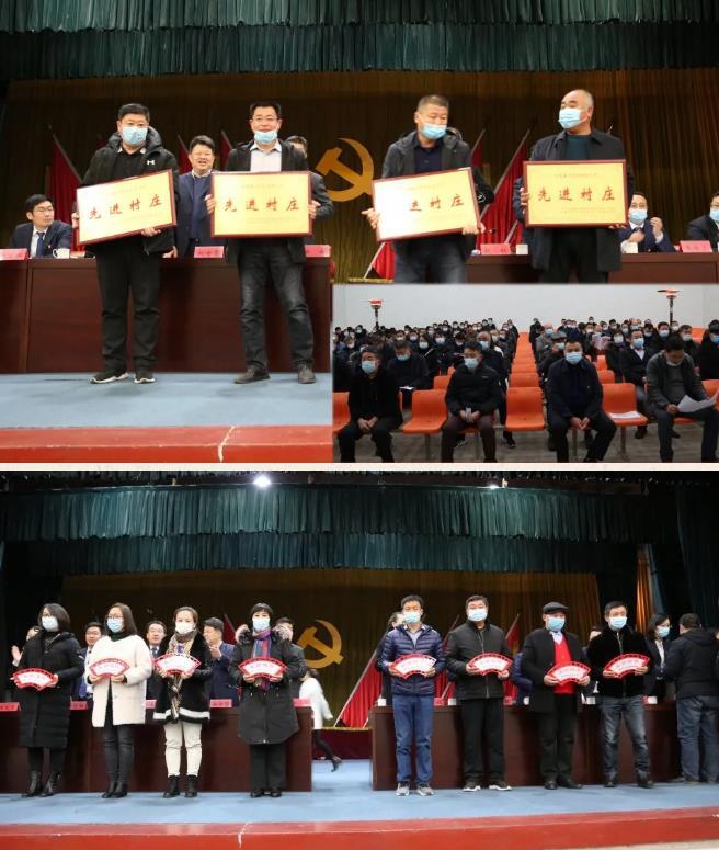 先进村庄、“美丽庭院”示范户、“美丽街巷”“党员示范街”获奖代表上台领奖