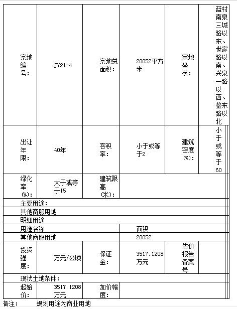 即墨蓝村1宗商服用地将拍 起始价3517.1208万元