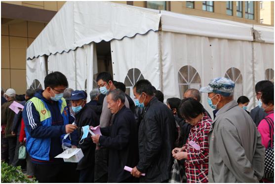 为排队接种村名派发口罩
