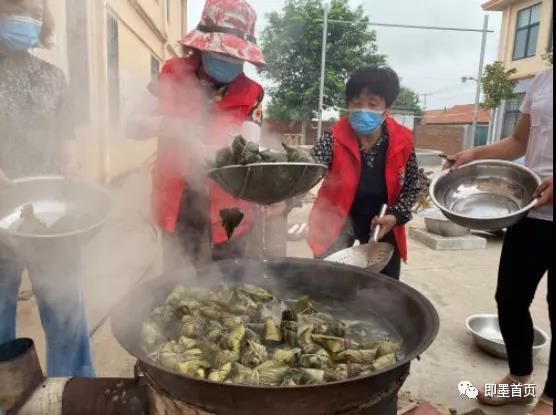 6月10日,即墨区移风镇张王庄村网格支部委员会的院子里粽香四溢,屋内充满了忙碌的身影,他们各有分工,细致地准备着村民们端午节的礼物—粽子。