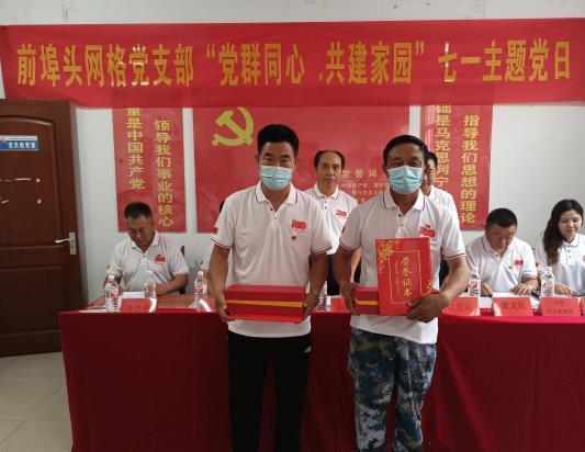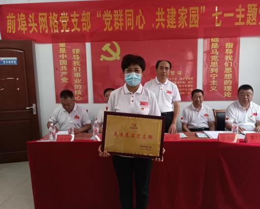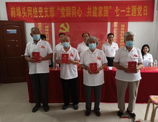 为迎接中国共产党建党100周年的到来,今天上午,在蓝村街道前埠头社区会议室里掌声雷动,村网格党支部正在这里进行“党群同心 共建家园”、“社区一线党旗红”活动,现场为入党五十年、优秀党员、先进基层党支部授牌。恰逢党员活动日,党员随后还在社区进行了义务劳动。