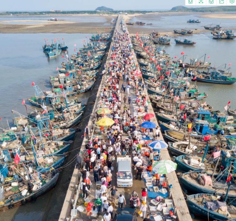 开海后 即墨田横绿岛跨海桥变身海鲜市场