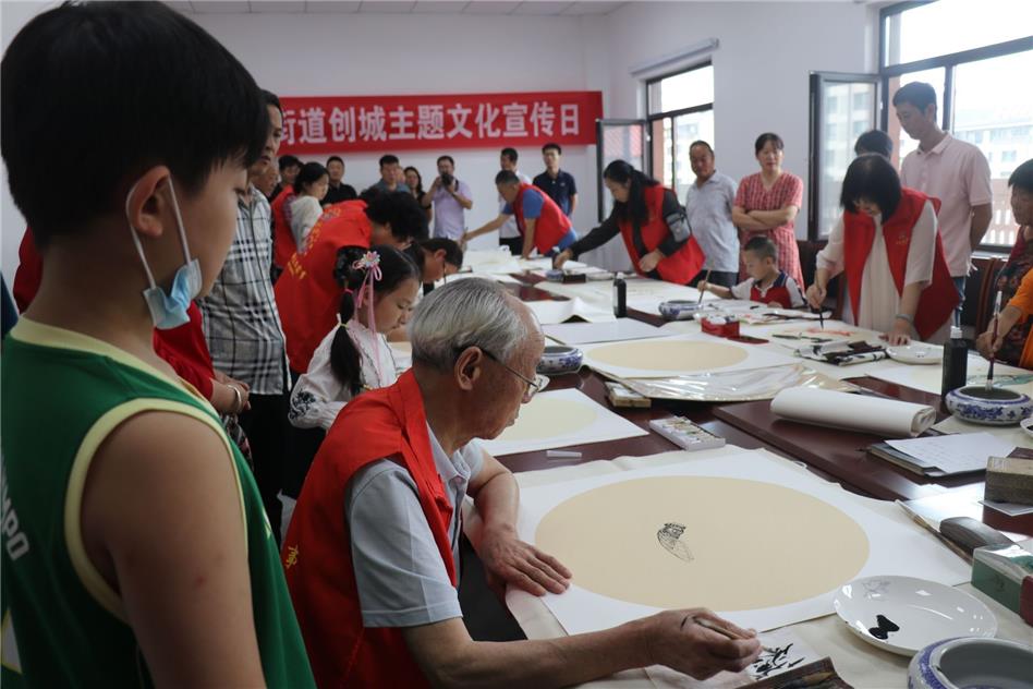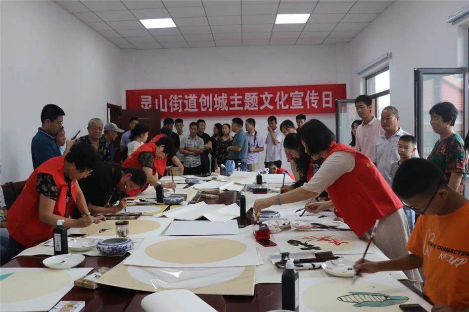即墨区灵山街道开展创城主题文化宣传日暨灵山新村“党群同心·共建家园”老少同乐书画笔会。