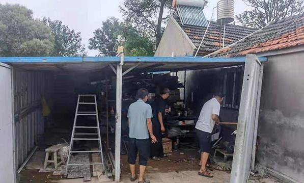 前期,执法部门日常巡查过程中,在北窝洛子村发现有村民在自家房屋后搭建铁皮屋两处,面积共40平方米,位于村庄道路旁,工作人员当即对当事人进行了相关手续核查,经查该处铁皮屋属于村民自行搭建,未具备相关建设手续,属于违章建筑,工作人员当场对违建当事人进行了事实说明,并对其下达自行整改通知书,目前,该处违章建筑已被清除。果园村有村民在自家房屋围墙外延搭建铁皮棚,用于存放杂物和车库,执法部门接到群众举报后,立即进行现场核查,经过与屋主沟通后,确认铁皮棚同样为个人私自搭建,街道立即组织相关人员对其依法进行拆除。