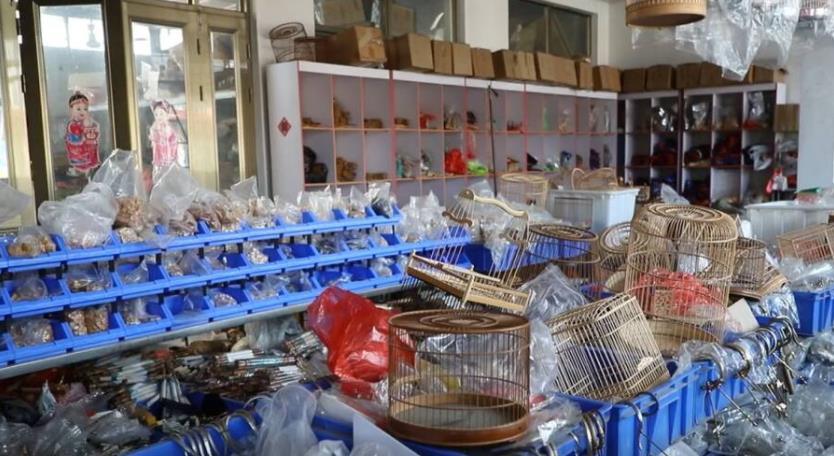 随着逐年高端定制的增加,普通鸟笼销售呈现下降的趋势,同时也会对鸟笼配件造成一定的影响。吴希同说,任何一款鸟笼都需要搭配配件,像笼钩、站棍、鸟食罐、罐扣、看板、扣手、门花等,根据大小、颜色、数量种类太多了,配件销售主要靠走量。村里有专门做配件的村民,一年下来净利润也要30多万。村民吴希波运营鸟笼配件店,已经开了10多年,店里的配件有上千种。他说父亲会做鸟笼子,他不会做鸟笼子。他的配件高中低端的品质都有,货源来自全国各地,目前是家庭经济来源的主要途径,今年受疫情影响收入比往年有所减少。