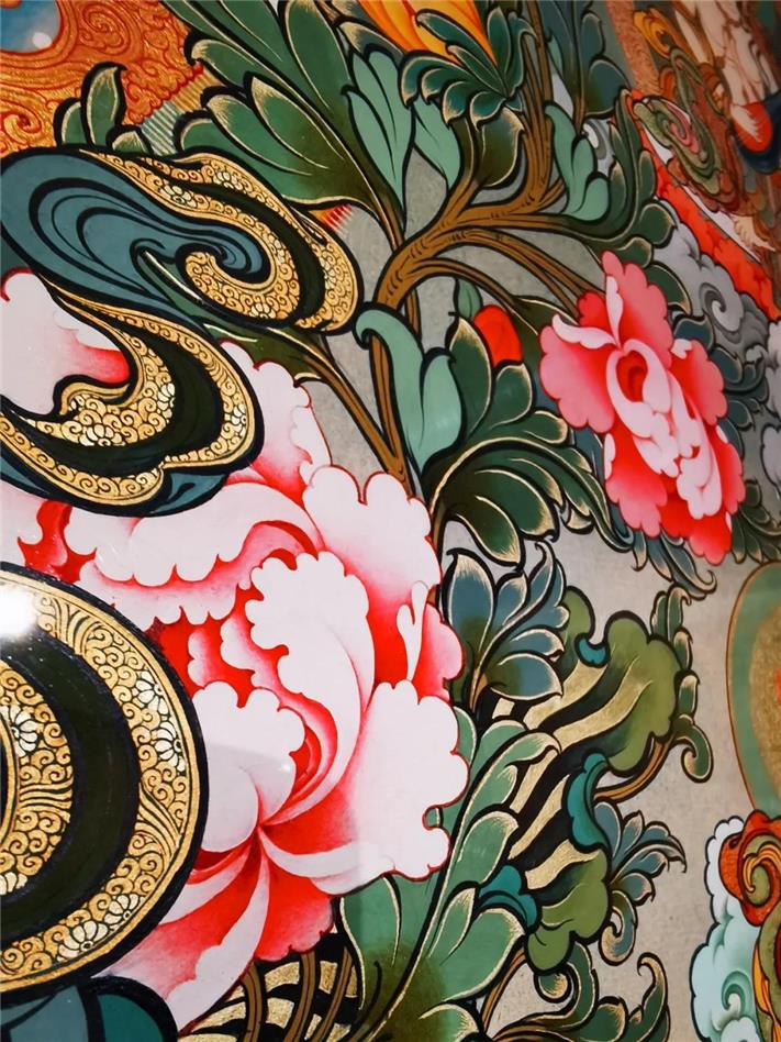 人类非物质文化遗产唐卡艺术是一种工笔重彩画,从打磨画布开始经历起稿、着色、勾线、描金等九道工序