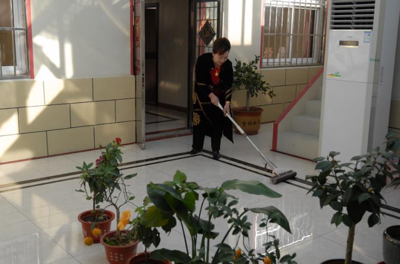山东省青岛市即墨区温泉街道社生后街村农民在打扫自己家的庭院卫生