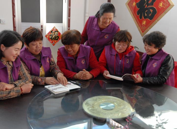 山东省青岛市即墨区温泉街道社生后街村的“巾帼巷长”在研究美丽庭院评选方法