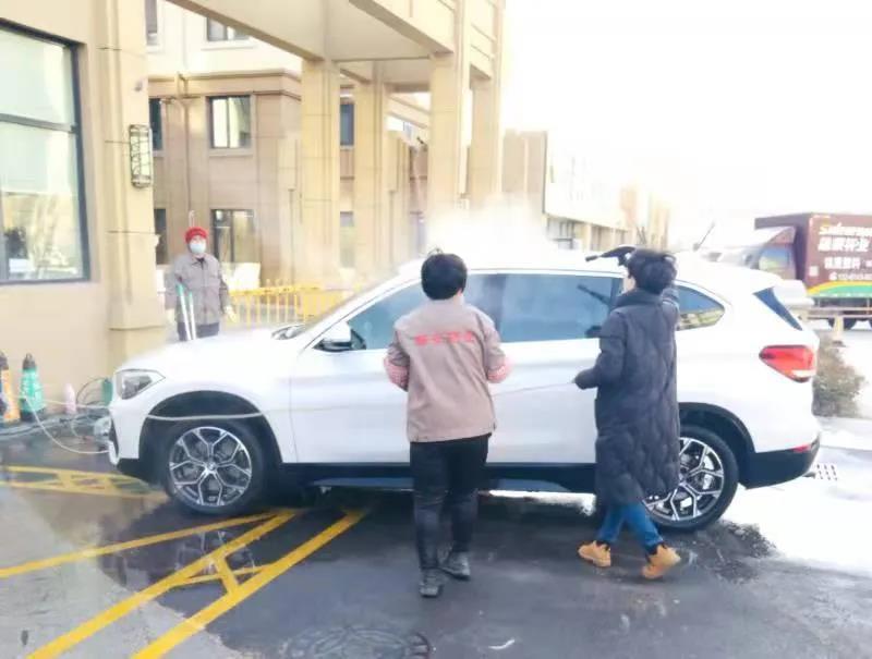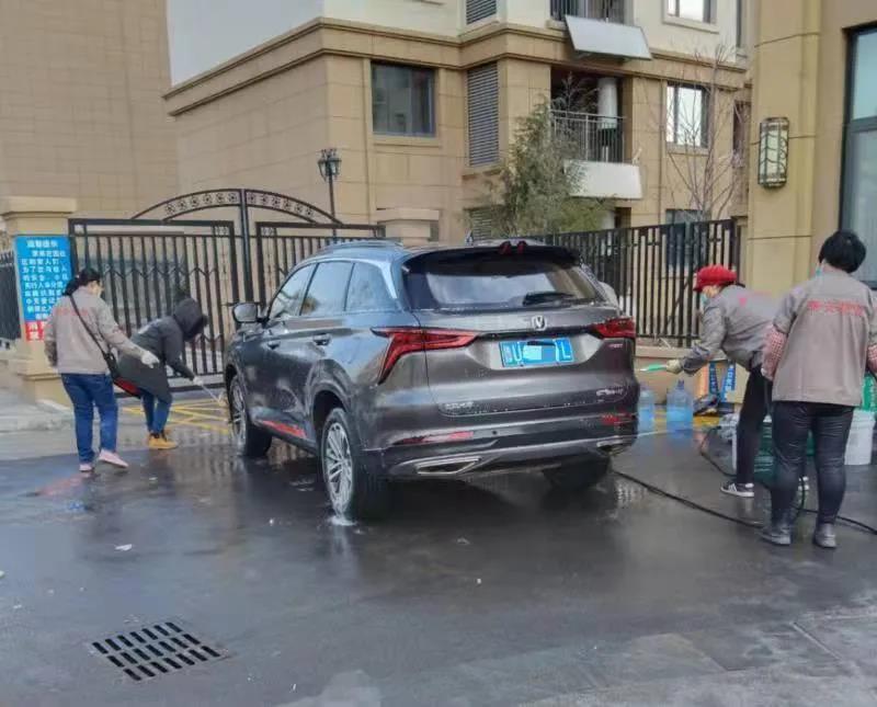 青岛市即墨区通济新经济区鼎泰丰社区组织开展“便民洗车送温暖”志愿者服务活动