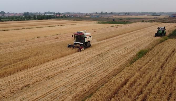 青岛即墨区小麦开镰收割忙 农民喜迎丰收季