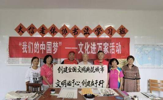 为进一步推进全国文明典范城市创建工作,加大创城宣传力度,丰富老年人文化生活,8月11日,即墨区大信街道老体协的7名书法志愿者,结合全国文明典范城市创建,开展“艺”起创城文化进万家书法主题活动。此次活动旨在用文艺作品宣传全国文明典范城市创建,传播正能量,引领社会文明风尚,为文明城市创建“增光添彩”。
