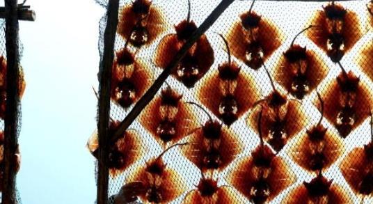 11月12日,山东省青岛市即墨区鳌山卫街道垛石村渔民在晾晒鱼干。