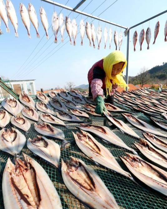 初冬时节,山东省青岛市即墨区沿海一带的渔民抓住晴好天气,忙着将捕获的海鱼切割、腌制、晾晒,加工成鱼干,通过线上线下的渠道销往全国各地。