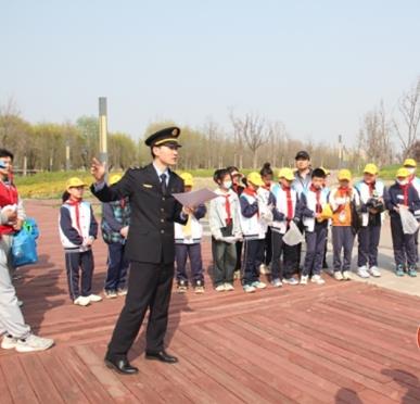 在潮海第二小学北校门前约100米处的墨水河亲水平台,即墨区生态文明宣讲团宣讲员和山东大学“小蓝帽”保河护海志愿服务队志愿者先后向同学们介绍了即墨区河流水系概况和河湖长制。