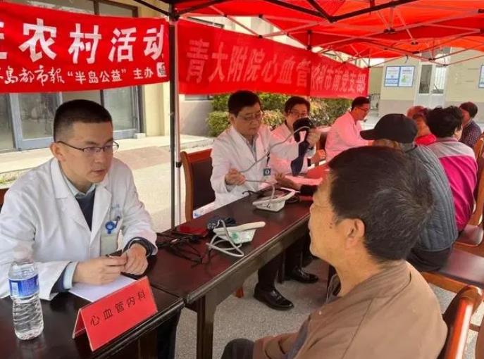 4月21日,由青岛市卫生健康委与大众报业半岛传媒“半岛公益”共同主办的青岛市健康教育进农村活动,走进即墨区段泊岚镇,来自青岛大学附属医院心血管内科、内分泌科、心脏超声科的专家团及医护人员,为当地的乡亲们开展健康知识普及,在活动现场耐心地为前来问诊的居民诊断,并就村民的健康问题进行答疑指导。此次活动让农村地区居民及早了解心脑血管疾病发生的诱因,认识到防患于未然的重要性,以及发生心脑血管疾病后的干预及科学治疗,专家团队得到了就诊乡亲们的一致好评。