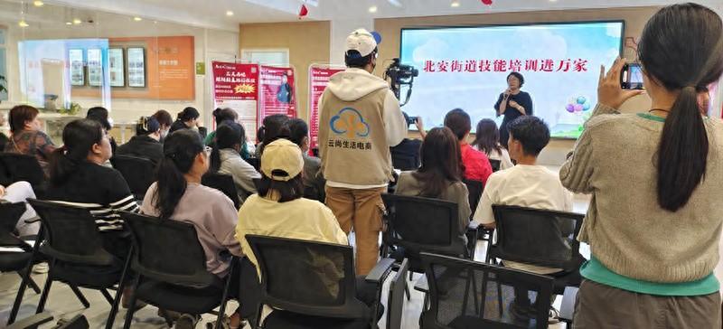 群众点餐,精准接单。为确保此次培训活动的针对性和实效性,北安街道便民服务中心提前进行了深入的摸排工作,联系各村居工作人员与辖区居民进行广泛沟通,了解他们的就业需求和技能培训意愿。根据收集到的意见及反馈,精心策划了直播电商、保健按摩、中式面点等培训课程,满足居民的实际需求。其中,直播电商作为新兴培训工种,引起众多年轻人的兴趣。