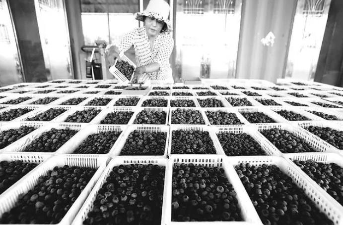 夏日时节,山东省青岛市即墨区金口镇东演堤村蓝莓种植基地迎来收获季,当地农民忙着采摘、分拣、装运蓝莓,供应各地市场。近年来,金口镇坚持“一村一品”发展现代特色农业,采取“基地+农户”模式,引导农民种植蓝莓,并吸引了众多游客前来观光采摘,带动农民增收,助力乡村振兴。