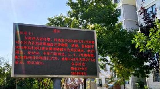 即墨区通济新区环卫办联合村庄、城市社区、物业等多方力量,通过张贴标语、公告,利用电子大屏等多种方式,在辖区内的村庄、小区内进行广泛宣传,以提高居民的知晓率,引导居民自觉参与环境整治,清理房前屋后、走廊等地方的杂物。
