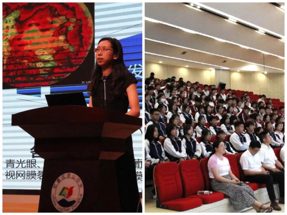 随后,同心九三行科普教育专家、九三学社青岛市立医院委员会社员、青岛市立医院眼科主治医师刘筱楠主任,为同学们讲授题为《清晰“视界”光明未来》的精彩科普讲座,赢得了师生们的热烈掌声和好评。