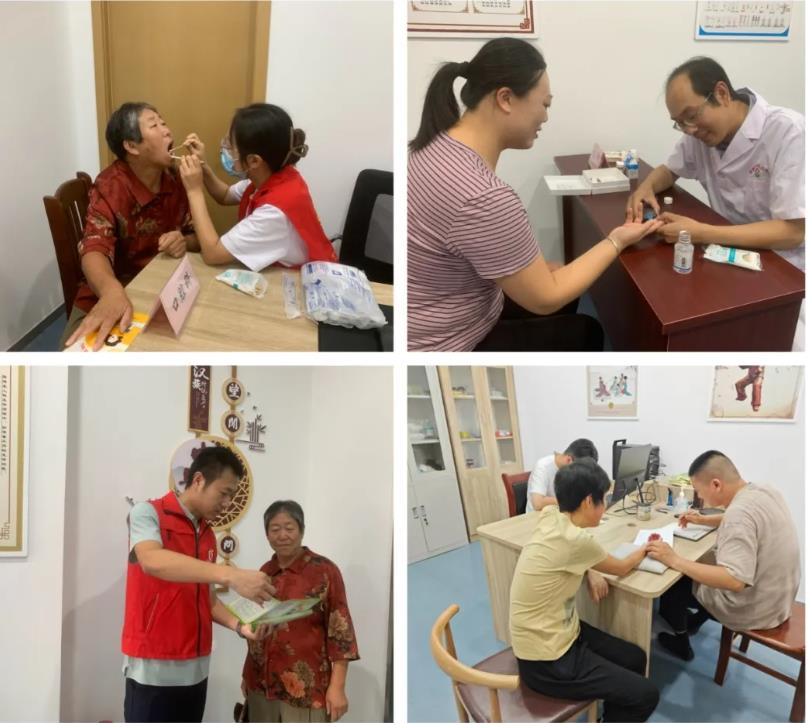 活动现场,医务人员为社区居民们提供测量血压、问诊咨询、体检报告解读及用药指导等服务,详细了解居民健康状况,讲解疾病预防与日常保健的小常识。除此之外,特别设置了中医非药物疗法体验区,由中医科医师现场为居民进行针刺、艾灸等体验治疗,科普中医养生保健知识。