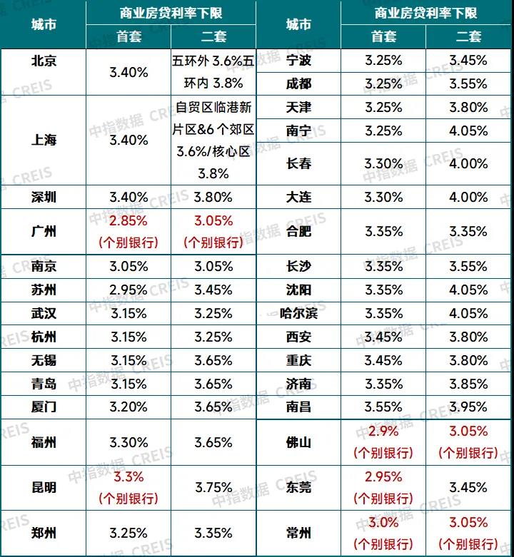 表:部分重点城市首套、二套商业房贷利率下限(截至8.31)