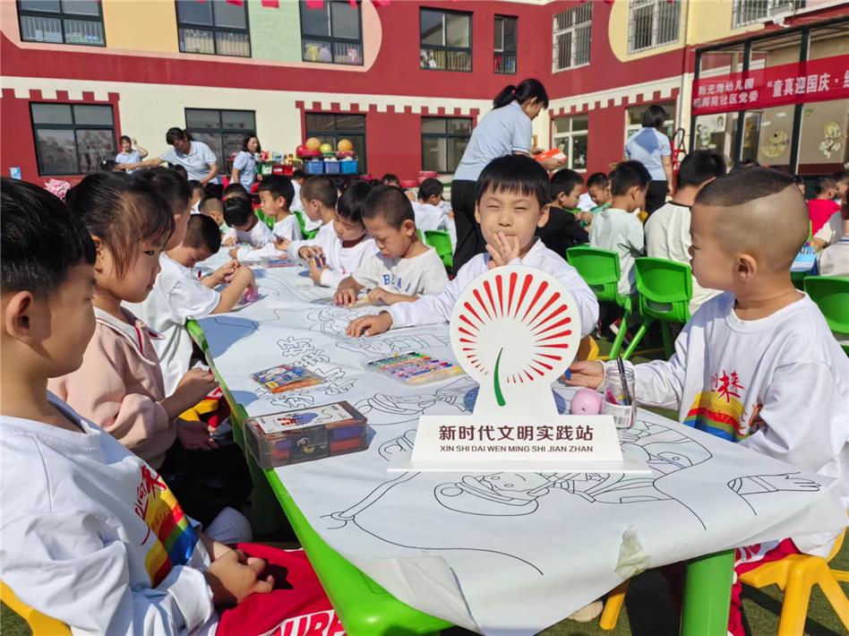 为大力传承和弘扬中华优秀传统文化,积极培育和践行社会主义核心价值观,增强广大青少年儿童的爱国情操。近日,即墨区通济新区西元庄硕辉苑社区携手阳光海幼儿园组织开展“萌娃绘长卷,童心颂祖国”国庆节主题活动。