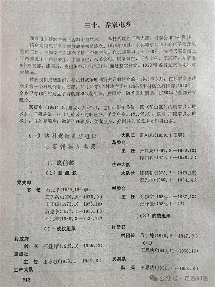 乔家屯乡 共20个村(即墨县 村级组织史 资料1934~1988)
