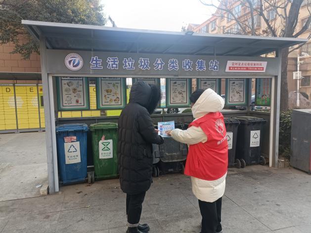 活动中,和谐家园社区组织志愿者在小区各投放点位,为前来投放垃圾的居民进行科普,指导居民正确区别垃圾的种类,做到正确分类。