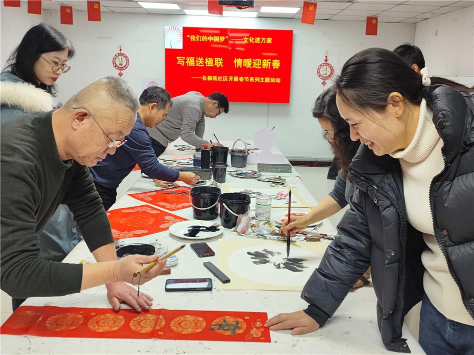 为弘扬家庭传统文化,培育良好家风,推进社区家庭文明建设,即墨区潮海街道名都苑社区于1月23日上午,邀请书画名家及区文明家庭组织开展“我们的节日•欢乐中国年”主题活动,活动吸引社区40多名居民参与。
