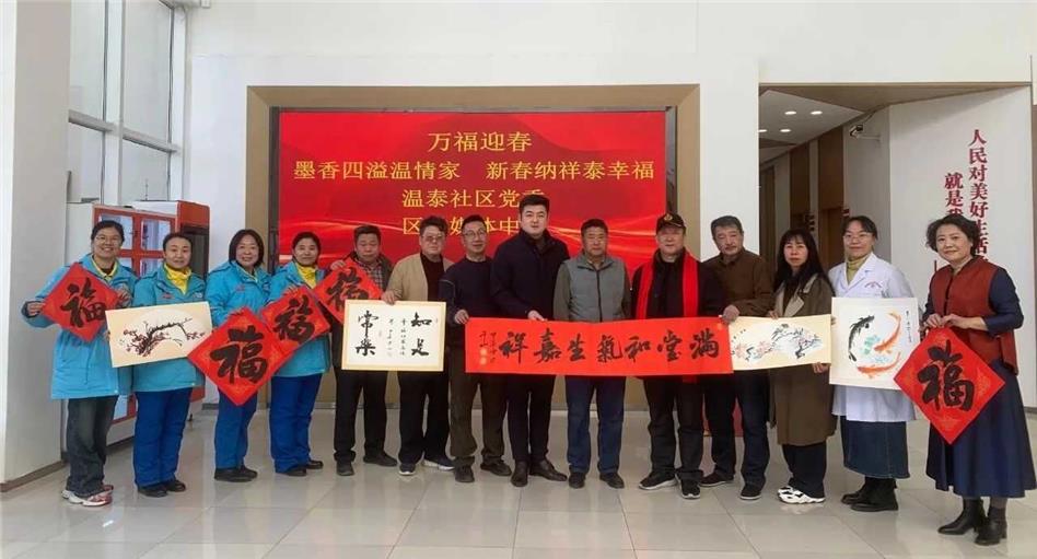 祥蛇贺岁,福满人间。为弘扬中华民族传统文化,丰富居民们的精神文化生活,温泰社区党委联合共建单位区融媒体中心开展了一场主题为“墨香四溢温情家,新春纳祥泰幸福”的写福字、送祝福活动。