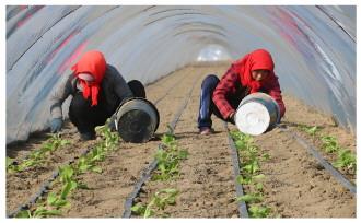日前,在移风店镇东马疃村的大棚蔬菜基地里,农户们抢抓农时,正在进行人工栽种。室外温度为-2℃,而大棚内的温度保持在约10℃左右。虽然天气寒冷,但大棚内一派繁忙景象,处处洋溢着春天的气息。