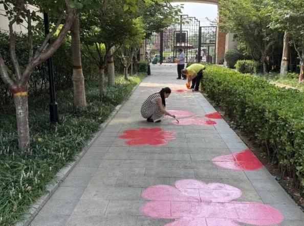 居民执笔,共绘社区温情。许多家庭早早来到现场,孩子们用稚嫩的手掌蘸取环保涂料,小心翼翼地为斑马线添上爱心;年轻人俯身勾勒轮廓,夫妻搭档默契填色……原本单调的灰白斑马线逐渐被暖粉、亮红色的爱心图案覆盖。一位参与绘制的居民笑着说:“第一次为社区‘画画',感觉这条路由我亲手变浪漫了!”浪漫升级,斑马线成邻里社交新窗口。活动结束后,原本普通的道路瞬间变身“网红景点”。居民们驻足拍照,孩子们在地面爱心上蹦跳,老年夫妇在地面爱心上携手漫步,现场一派和谐浪漫。