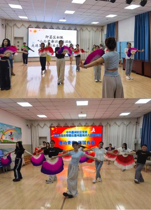 秋韵荡漾,感恩飞扬。在第41个教师节来临之际,为弘扬尊师重教传统美德,丰富教师文化生活,环秀街道墨河社区党委创新党建引领模式,携手妇联组织、墨河嘉苑幼儿园共同举办“扇舞翩翩颂师恩”教师节特别活动,为辛勤耕耘的教师们带来一场以胶州秧歌为元素的公益扇子舞蹈课程。