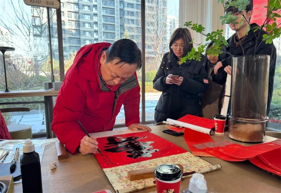 随着一幅幅作品完成,活动现场变成了红色的海洋。居民们手持春联和福字,相互欣赏、交流,社区里洋溢着浓浓的年味和邻里温情。