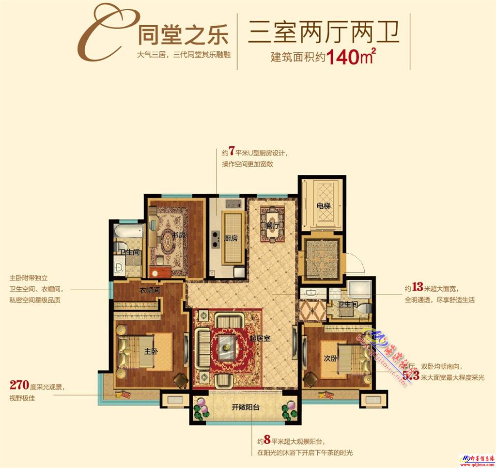二期华府总占地3.6万㎡,总建筑面积11.1万㎡,由4栋18层的小高层,3栋24层以及1栋26层的高层组成,户型面积从80—140㎡不等,所有户型均实现南北通透,房间设计均为大面宽短进深,空间布局更合理,户型更宜居。