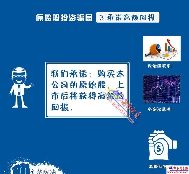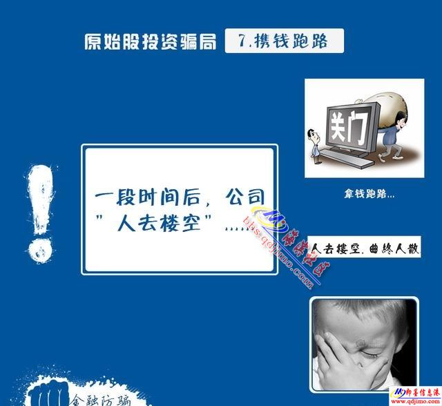三,股东入资唯一的方式是备注为股本金汇入到公司的账户中,而且国内有限责任公司的股东最多为50人,股份有限公司的股东最多为200人(上市公司除外)。在任何原始股骗局中,需要有公司股东会签字认可的决议,要看到该公司原有的章程,在工商局查到你成为股东的信息,只要有一个条件不能满足,均存在欺骗的可能性,在法律上投资入股的身份有可能不被国家机构认可,投资人的身份也有可能不受国家相关法律法规的保护。