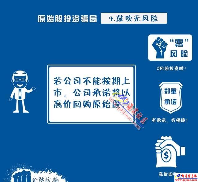 凡是以“零风险、高回报”为噱头的原始股权出售,都是利用投资者一夜暴富的心理实施诈骗。