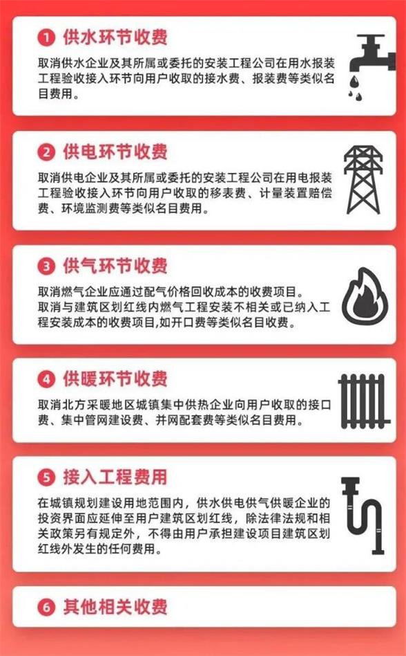 4. 建筑区划红线内供水供电供气供暖管网的建设安装、更新改造、维修维护等费用已由政府承担的,不得再向用户收取。