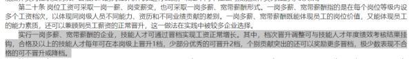 根据指引中的具体规定,岗位工资可采取一岗一薪、岗变薪变,也可采取一岗多薪、宽带薪酬形式。其中实行一岗多薪、宽带薪酬的企业,技能人才可通过晋档实现工资正常增长。