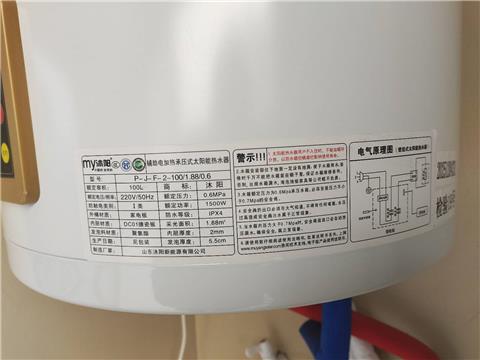 物品名称及描述:沐阳太阳能热水器,100升水箱,全新,功能正常。带数显控制面板,一级能效,省电。自提